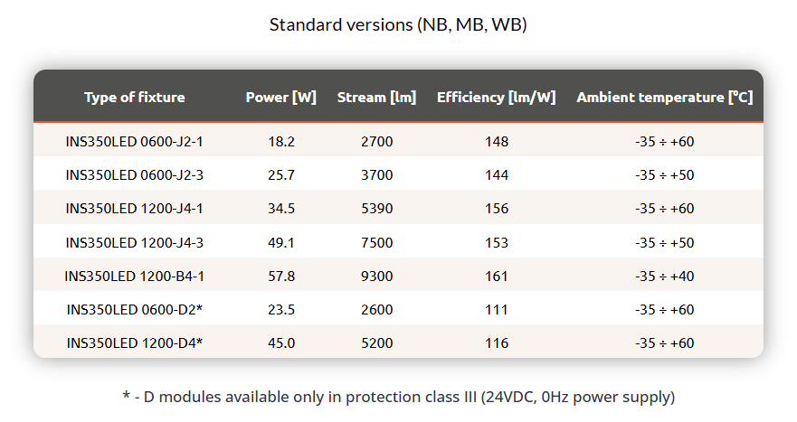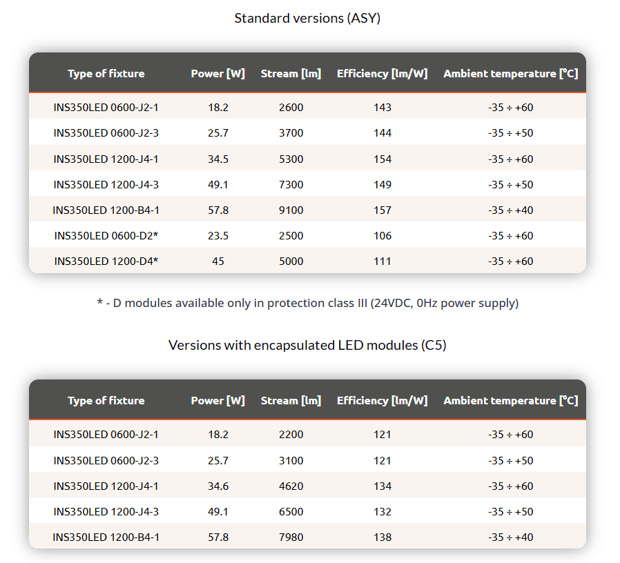 Version equipped with power supply with the DALI-2 protocol is available as DA. The light fitting can be equipped with encapsulated LED modules and be adapted to work in high corrosion environment C5.