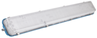 Light fitting for the illumination of indoor and outdoor moist, dusty industrial spaces such as halls, warehouses, workshops, corridors, cellars, particularly environments with an increased occurrence of aggressive chemicals.
